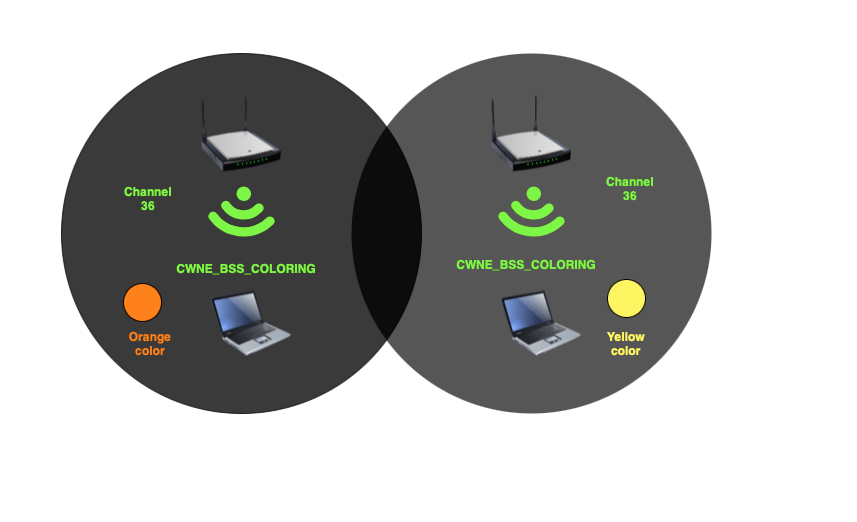 Un Punto de Acceso (AP) comunica el color de su BSS en los Beacons, Probe Request y frames de después de (Re)Asociación. Por ejemplo, si dos dispositivos asociados con BSS diferentes pueden escuchar cada transmisión del otro, a niveles de señal relativamente bajos, cada dispositivo debería posponer su transmisión al «escuchar» la conversación del otro. Pero si ambos dispositivos transmitieran al mismo tiempo, es probable que ninguno genere suficiente interferencia en el receptor de la otra BSS.