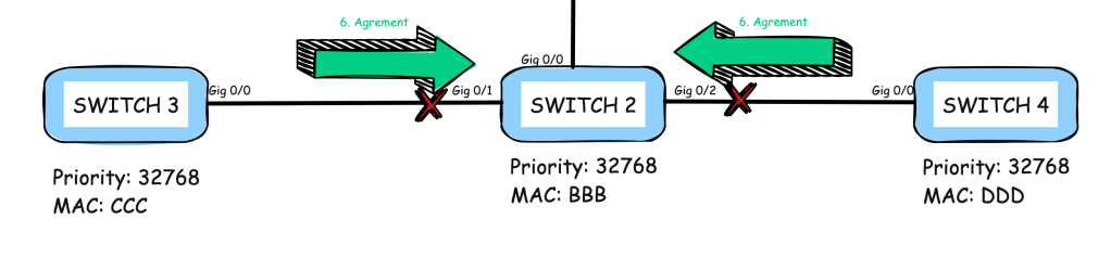 SW3 y SW4 no tienen ninguna otra interfaz, por lo que enviarán un agreement de regreso a SW2.